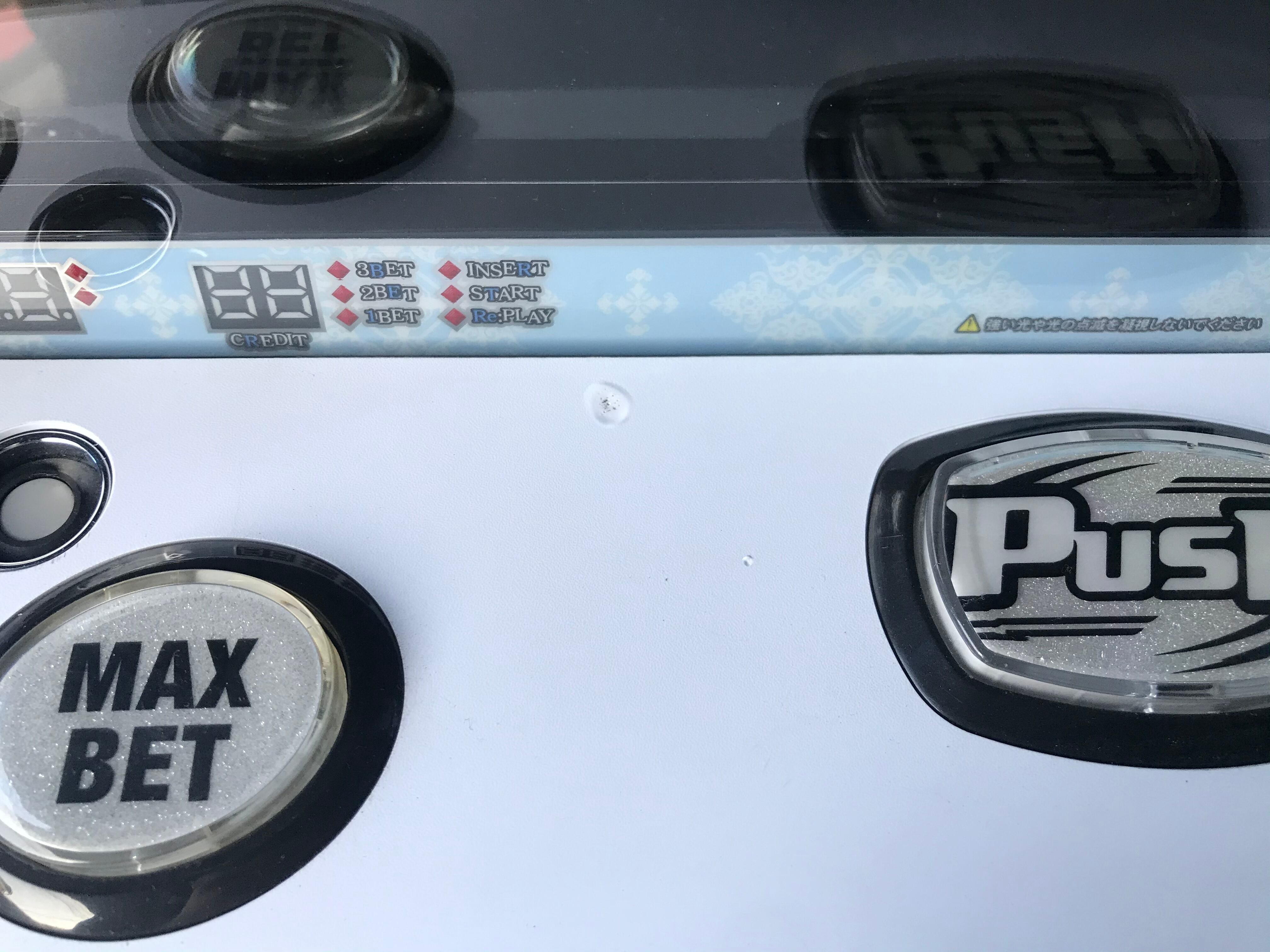 MAXベットボタンの右に、タバコで焼いた跡があります。